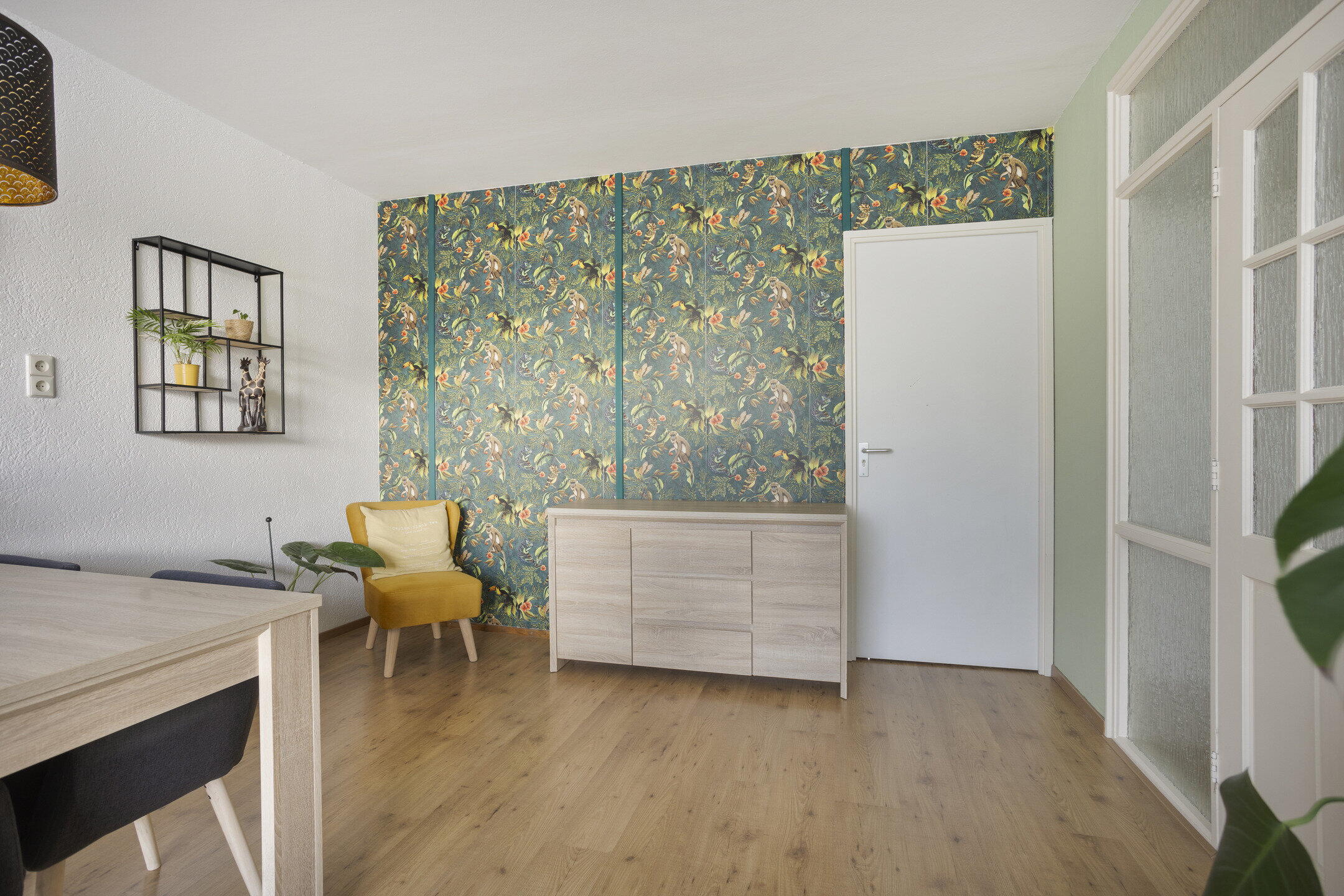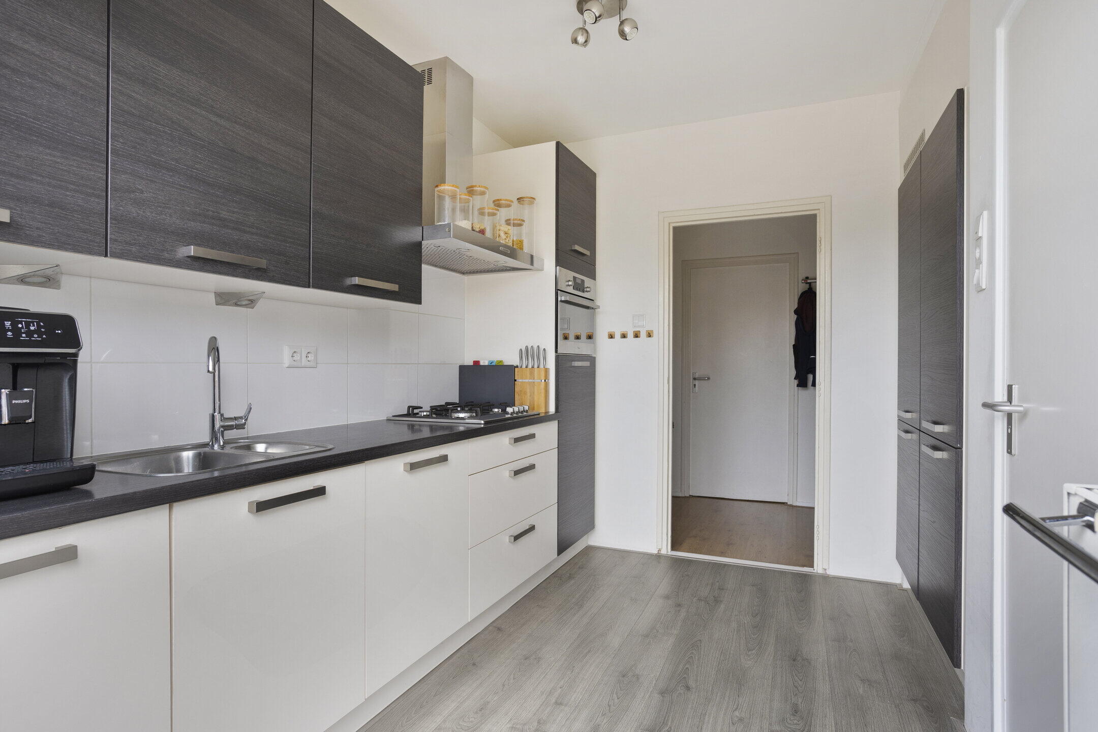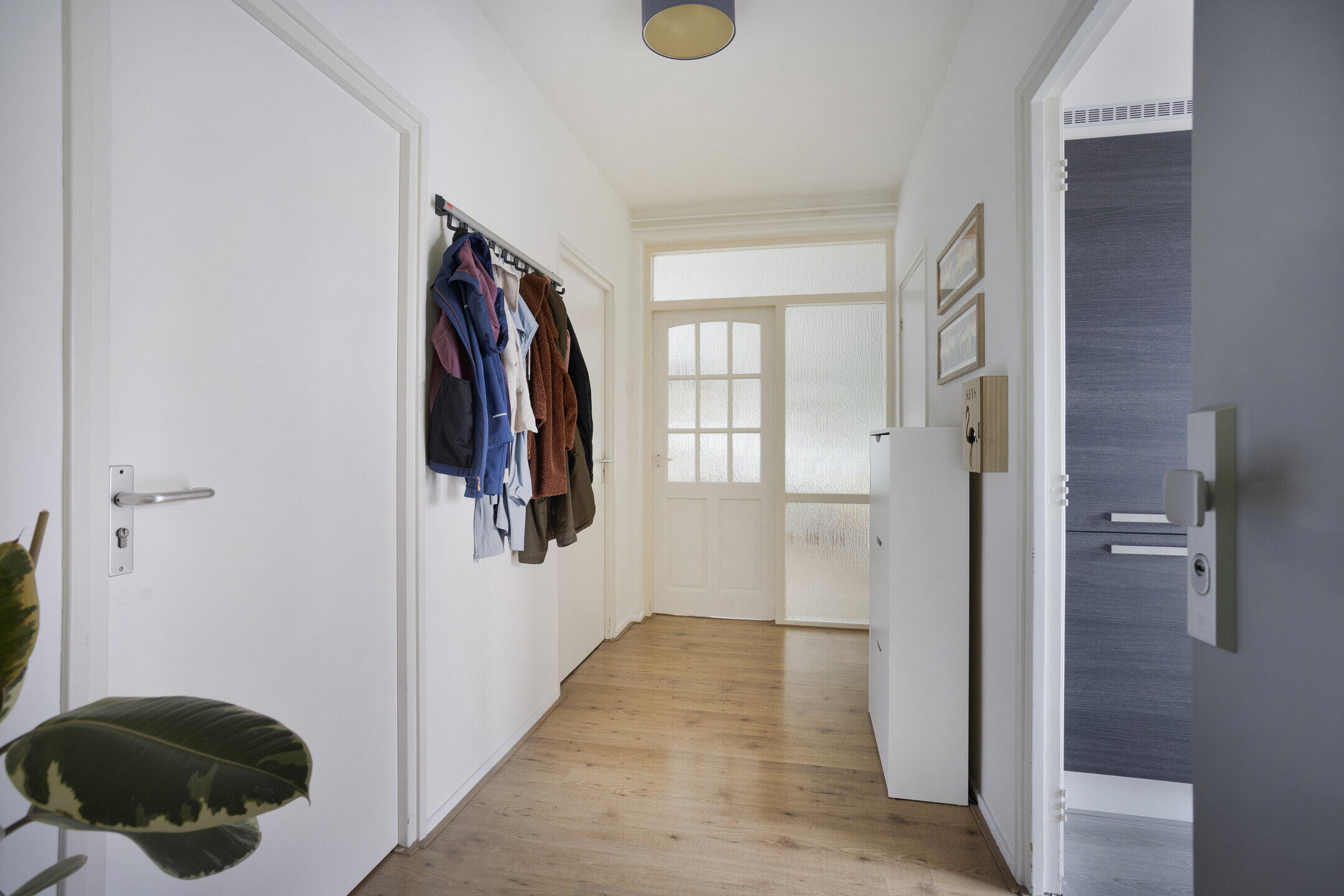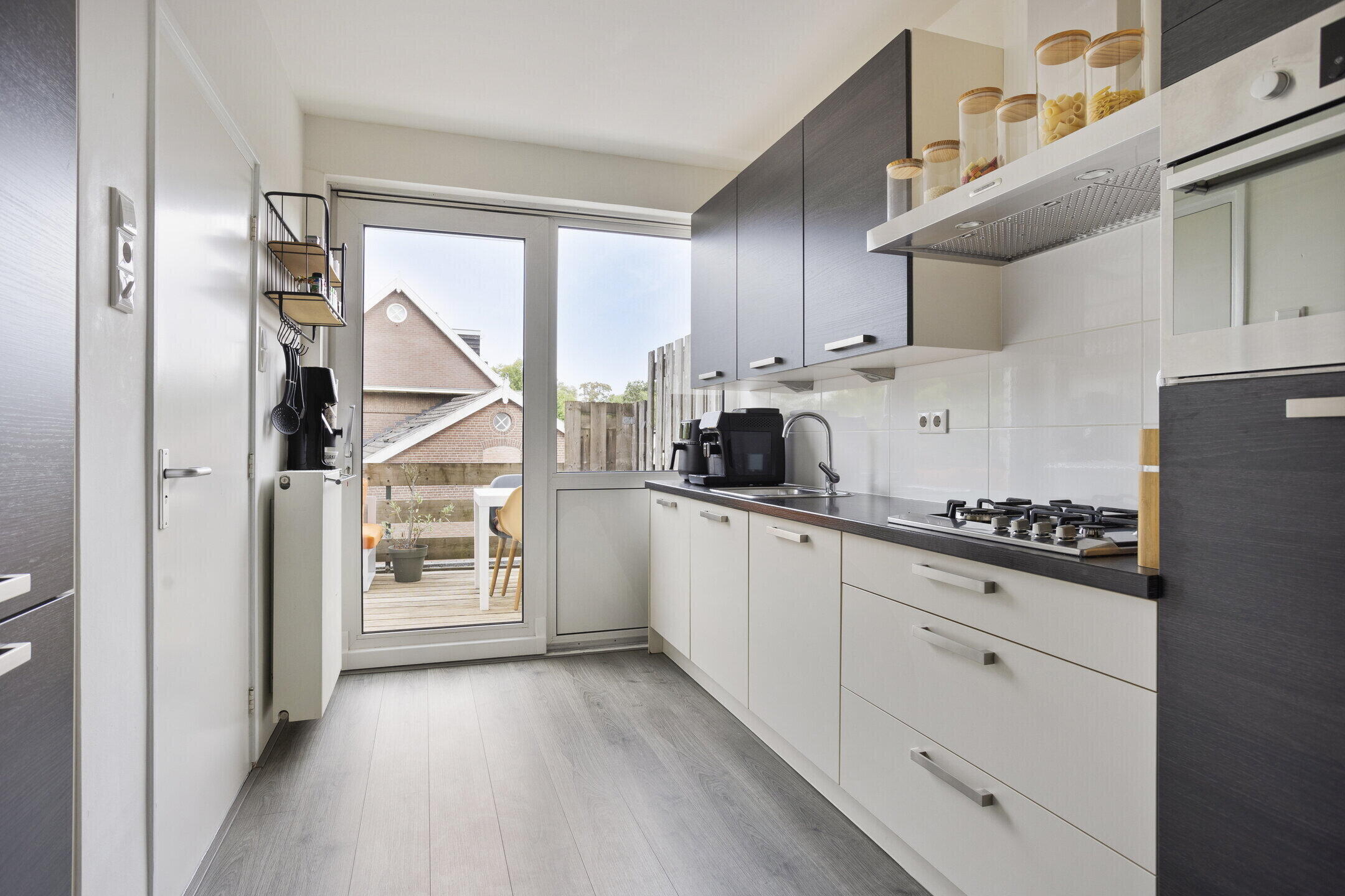 Via de ruime hal zijn alle vertrekken bereikbaar. De woonkamer beschikt over grote ramen, waardoor er veel daglicht binnenkomt, en is voorzien van een elektrisch bedienbaar zonnescherm. Er is volop ruimte voor zowel een comfortabele zithoek als een eethoek. De gesloten keuken, uit circa 2014, is uitgerust met een 4-pits gasfornuis, afzuigkap, combi-oven, koelkast/vriezer en vaatwasser. Vanuit de keuken is er toegang tot de badkamer én tot het royale terras aan de achterzijde. Dit terras ligt op het noordwesten, heeft een vrij uitzicht en vormt een fijne plek om te genieten van de middag- en avondzon.
