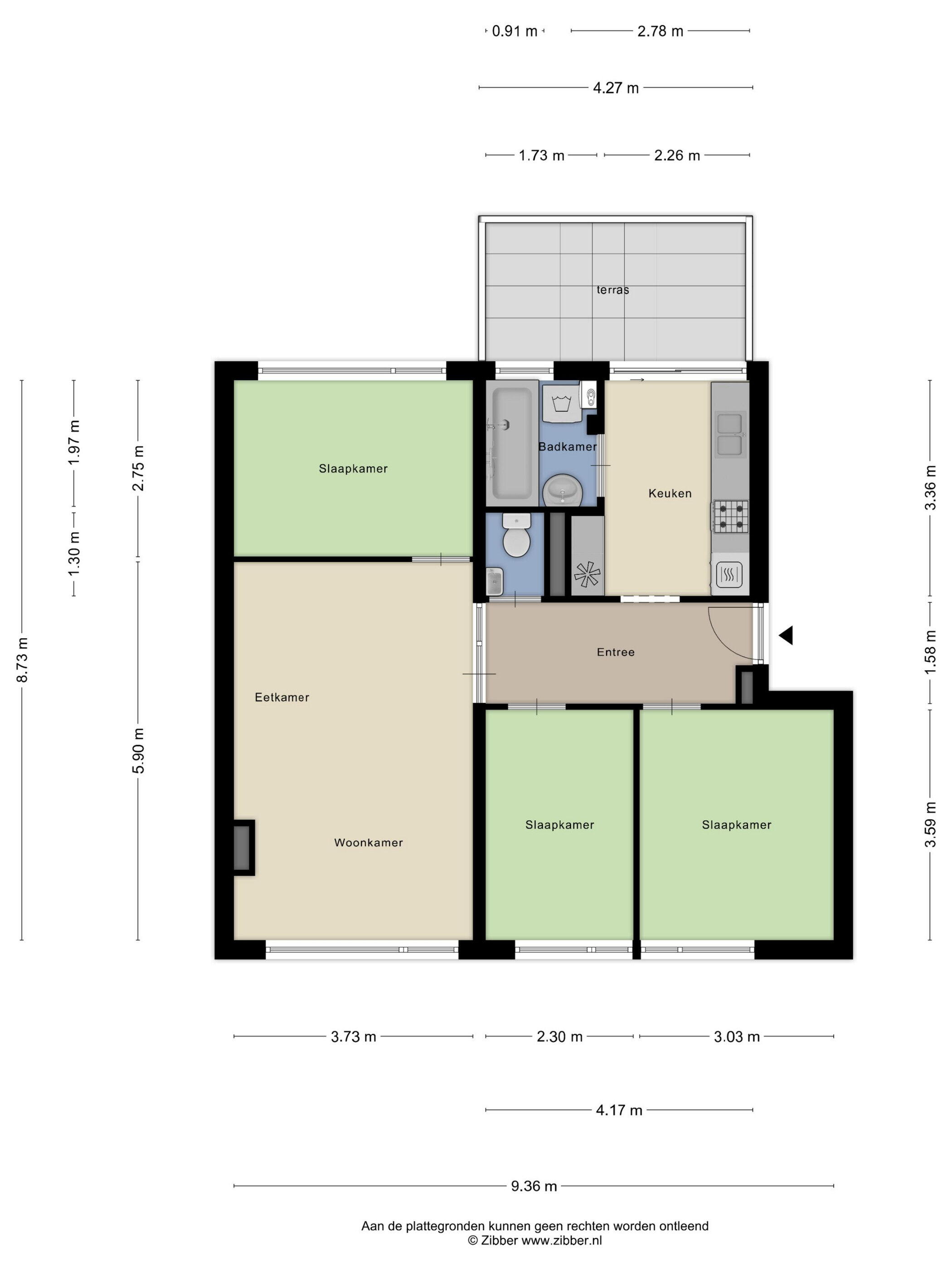 - Drie slaapkamers, allen voorzien van laminaatvloer