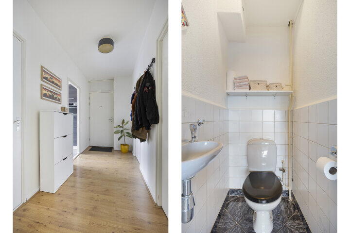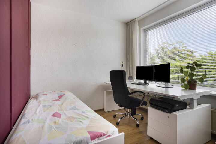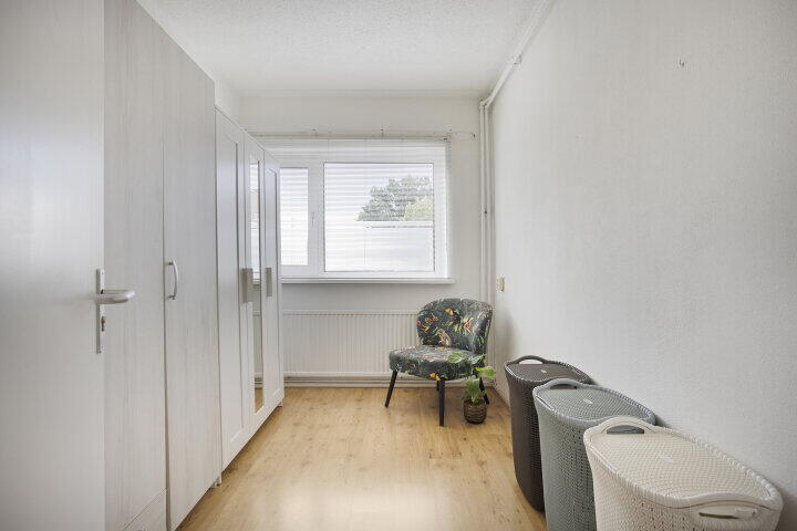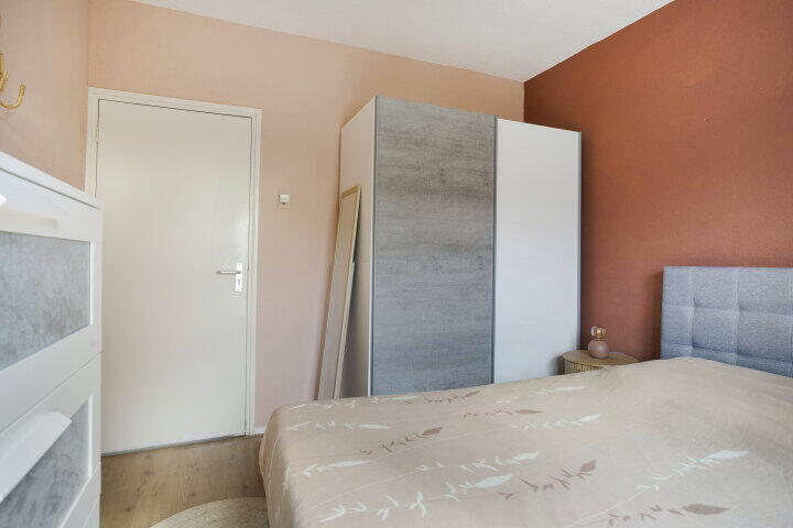 Het appartement beschikt over drie slaapkamers, alle voorzien van een nette laminaatvloer. De grote slaapkamer aan de voorzijde is uitgerust met een rolluik, net als de slaapkamer aan de achterzijde. De badkamer is eenvoudig en gedateerd, maar biedt volop mogelijkheden om naar eigen smaak opnieuw in te richten. Het toilet is apart gesitueerd in de hal. Op de begane grond bevindt zich een eigen berging, ideaal voor het stallen van fietsen en extra opslag.